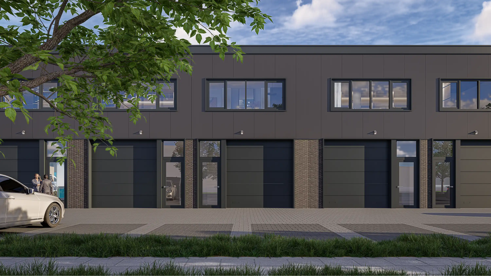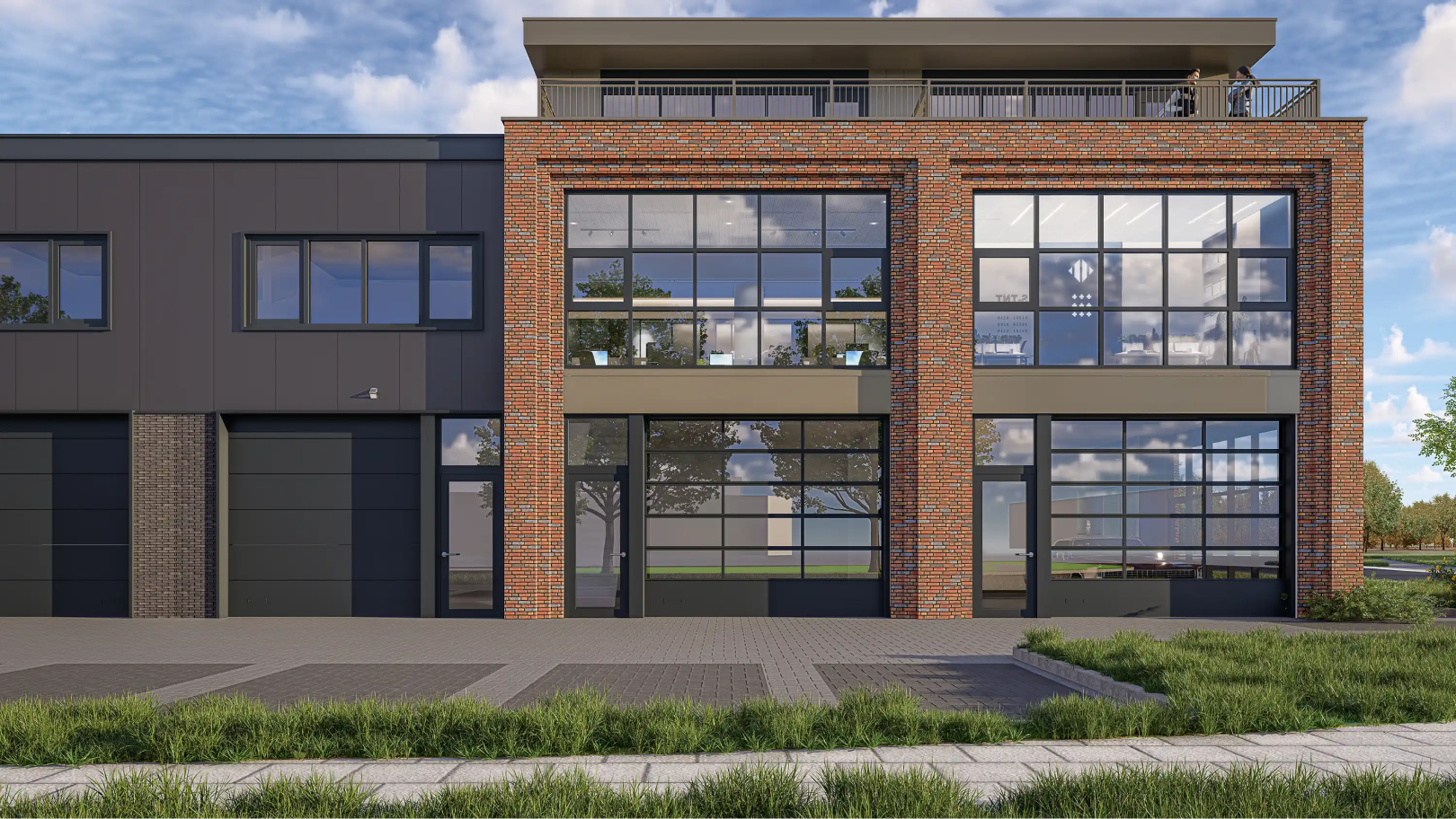 Deze unit is 3 laags inclusief een eigen dakterras en gekenmerkt door het metselwerk in New Yorkse stijl alsmede de grote glazen puien. Er kan gekozen worden voor een overhead- of een harmonicadeur. Qua look & feel een prachtige unit. Door het vele daglicht en het dakterras blinkt deze unit 10 ook uit in gebruikersgemak en kwaliteit.